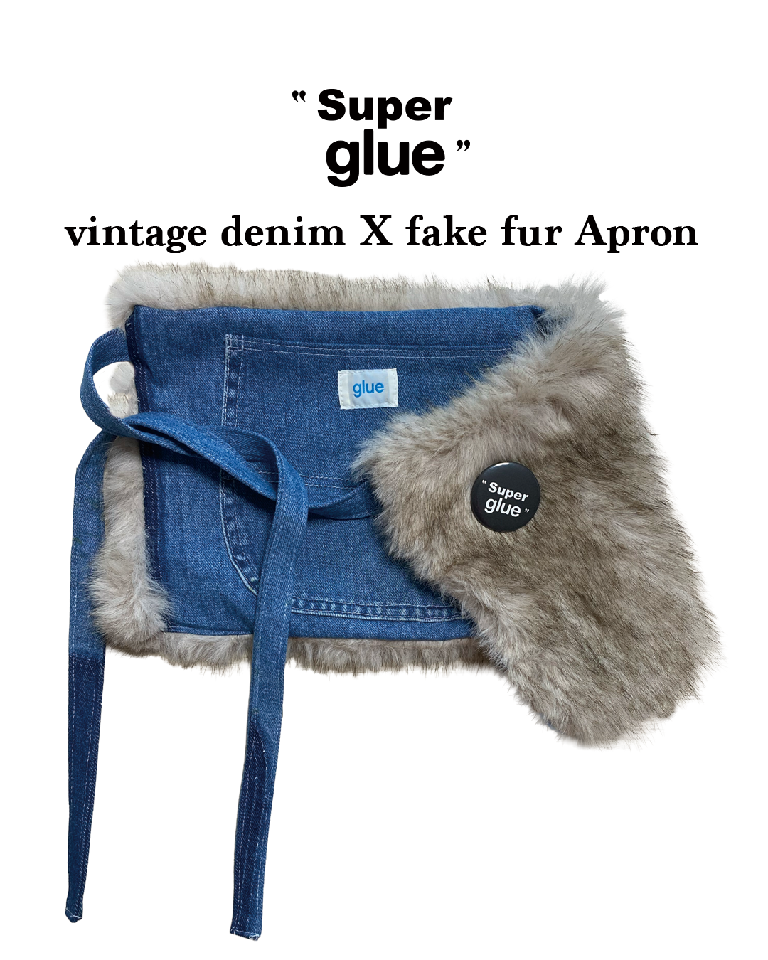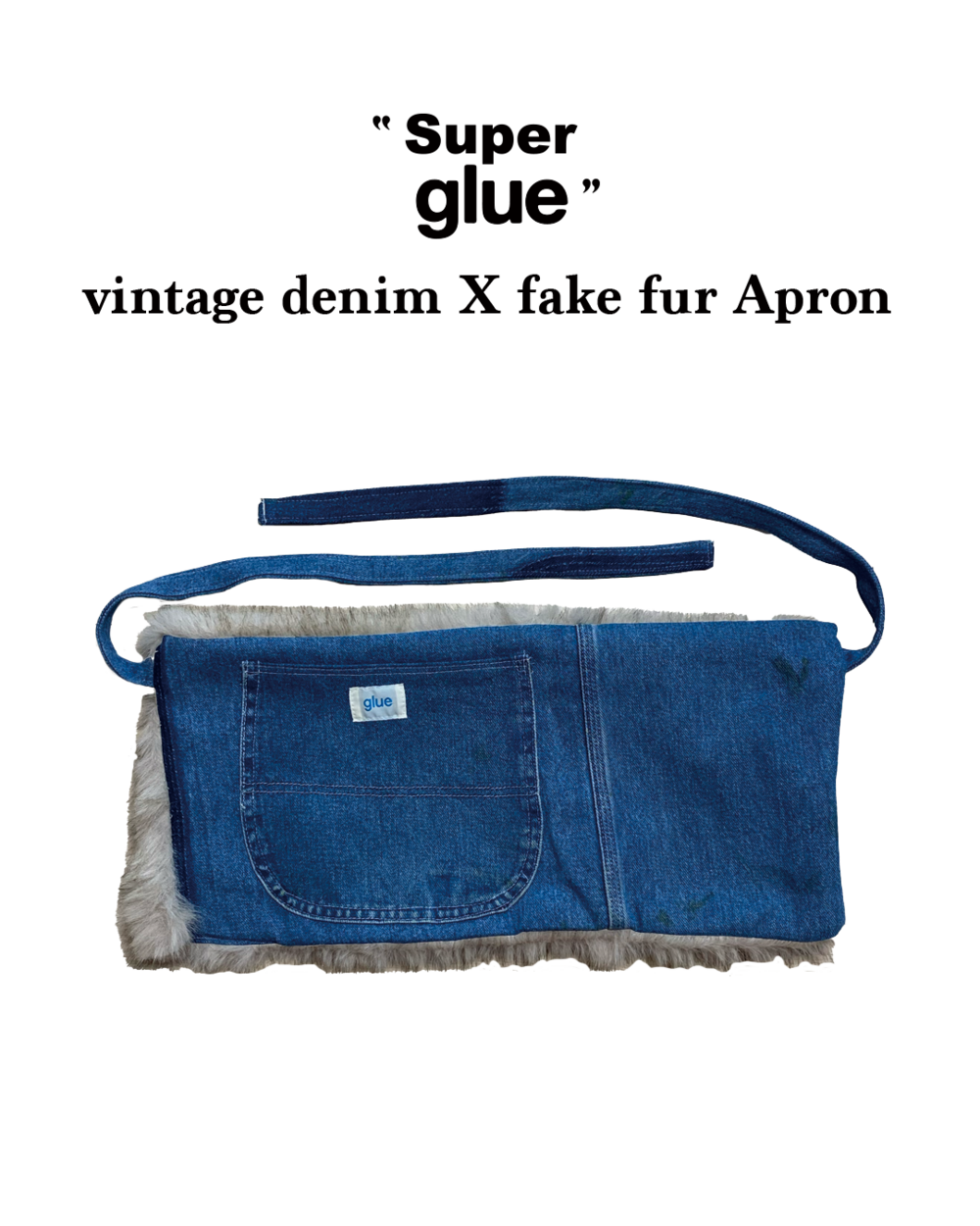 "Super glue" vintage denim X fake fur Apron