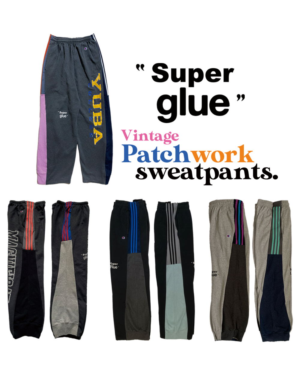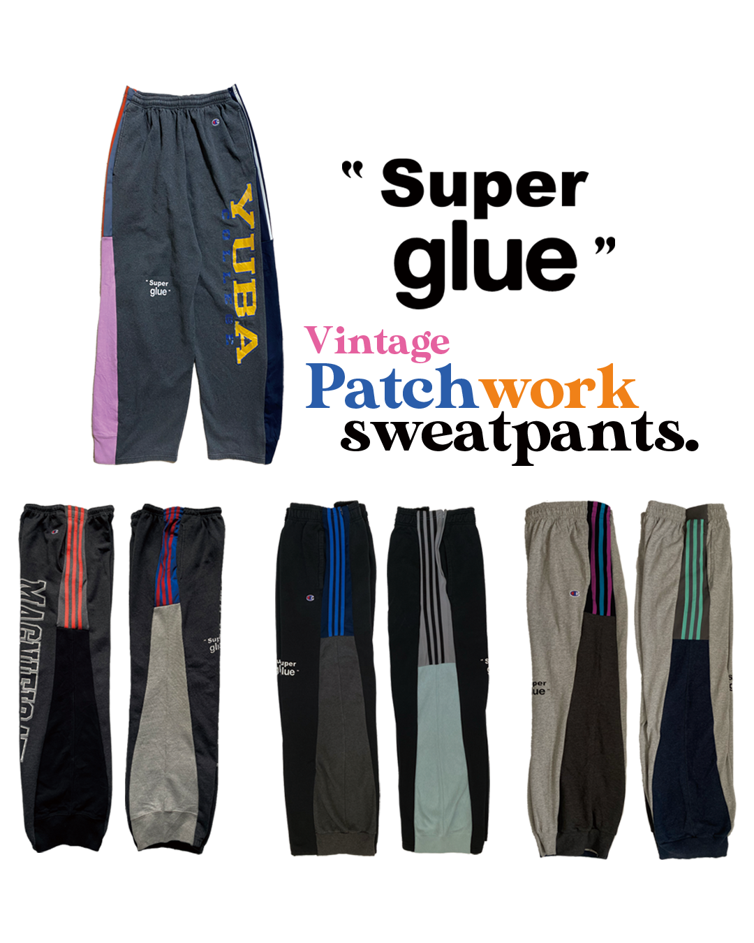 "Super glue"vintage patchwork sweatpants