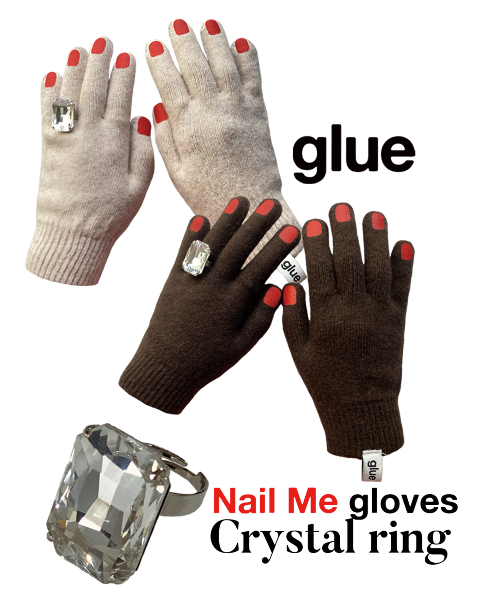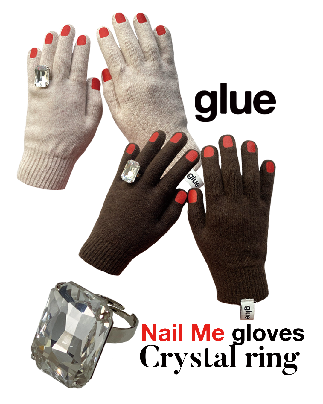 "glue" Nail Me gloves+Crystal Ring